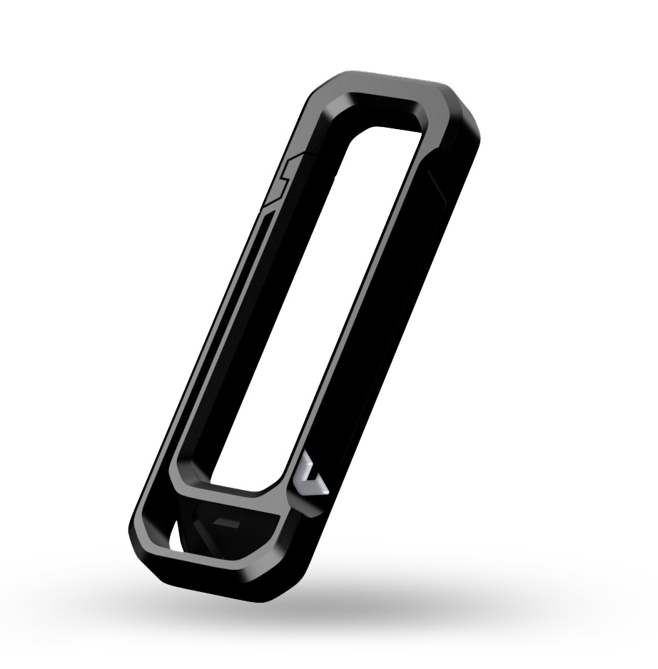 Konstrukcja karabińczyka została zaprojektowana w skali dłoni. Otwór umożliwia przełożenie ręki, co może pełnić także funkcję awaryjnego narzędzia do obrony osobistej. Forma została zaprojektowana tak, aby była ergonomiczna, pewna w trzymaniu i jednocześnie dyskretna w codziennym użytkowaniu.